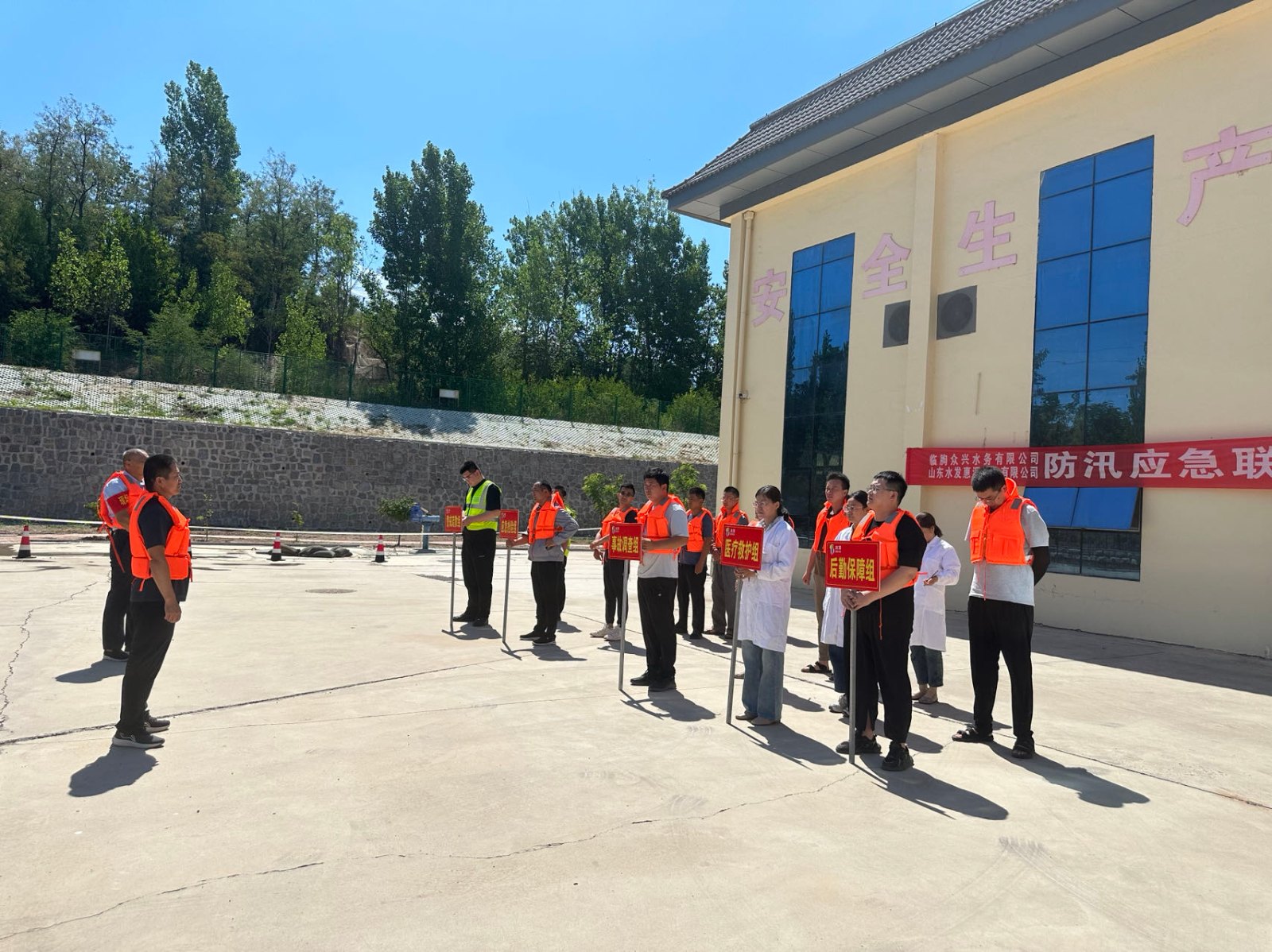 為切實提高應(yīng)急工作處置能力,在汛期到來之前做好防洪防汛預(yù)警,確保人身及設(shè)備的安全,6月27日,按照《臨朐眾興2024年“安全生產(chǎn)月”活動實施方案》,臨朐眾興水務(wù)與惠源水務(wù)開展防汛實戰(zhàn)演練,兩公司應(yīng)急救援指揮部及生產(chǎn)運行一線員工20余人參加應(yīng)急演練。